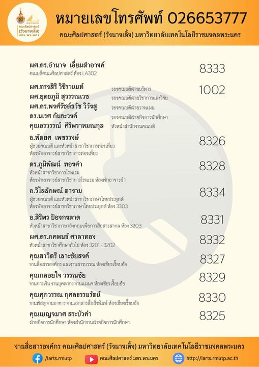 ☎️ คณะศิลปศาสตร์ (วังนางเลิ้ง) แจ้งปรับปรุงข้อมูลหมายเลขโทรศัพท์ภายใน