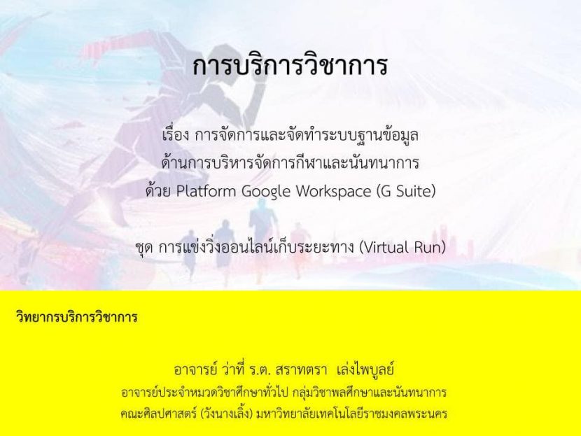 บริการวิชาการด้านกีฬาและนันทนาการ ในการจัดทำระบบฐานข้อมูลเดิน-วิ่ง เพื่อสุขภาพ แบบออนไลน์