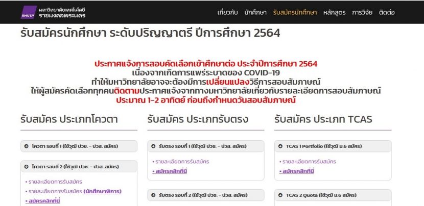 ราชมงคลพระนคร เปิดรับสมัครนักศึกษาใหม่ ระดับปริญญาตรี ประจำปีการศึกษา 2564 (สำหรับวุฒิ ม.6) ในระบบ TCAS