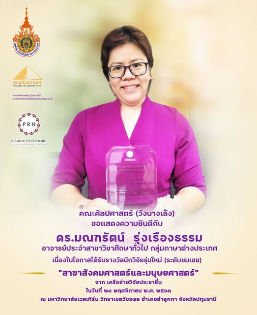 รางวัลนักวิจัยรุ่นใหม่ (ระดับชมเชย) “สาขาสังคมศาสตร์และมนุษยศาสตร์” Posted December 3, 2020 pratheep.yPosted in ข่าว