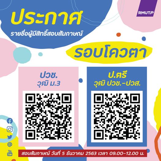 ประกาศรายชื่อผู้มีสิทธิ์สอบสัมภาษณ์ รอบโควตา ป.ตรี (วุฒิ ปวช.-ปวส.) Posted December 3, 2020 pratheep.yPosted in ข่าว
