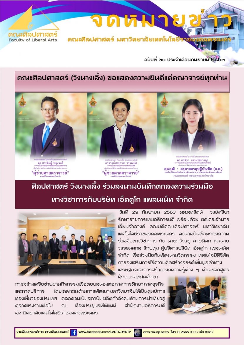 จดหมายข่าวฉบับที่ ๒๐ ประจำเดือนกันยายน ๒๕๖๓